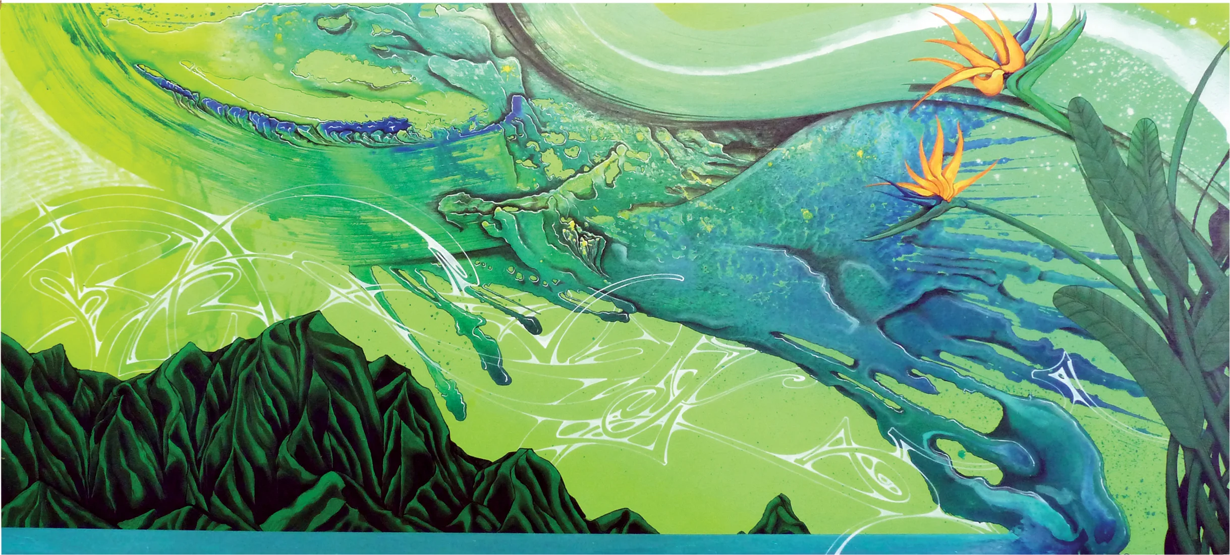 Ko'olau Rain, 48"x108" mixed media on lauan panel